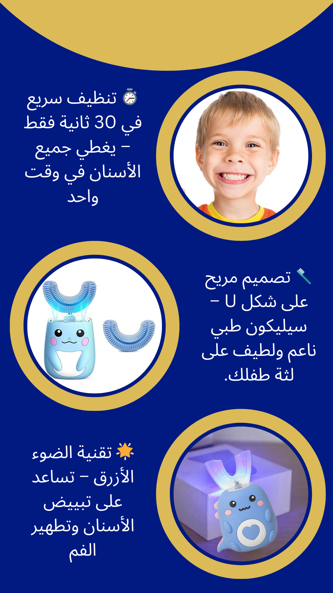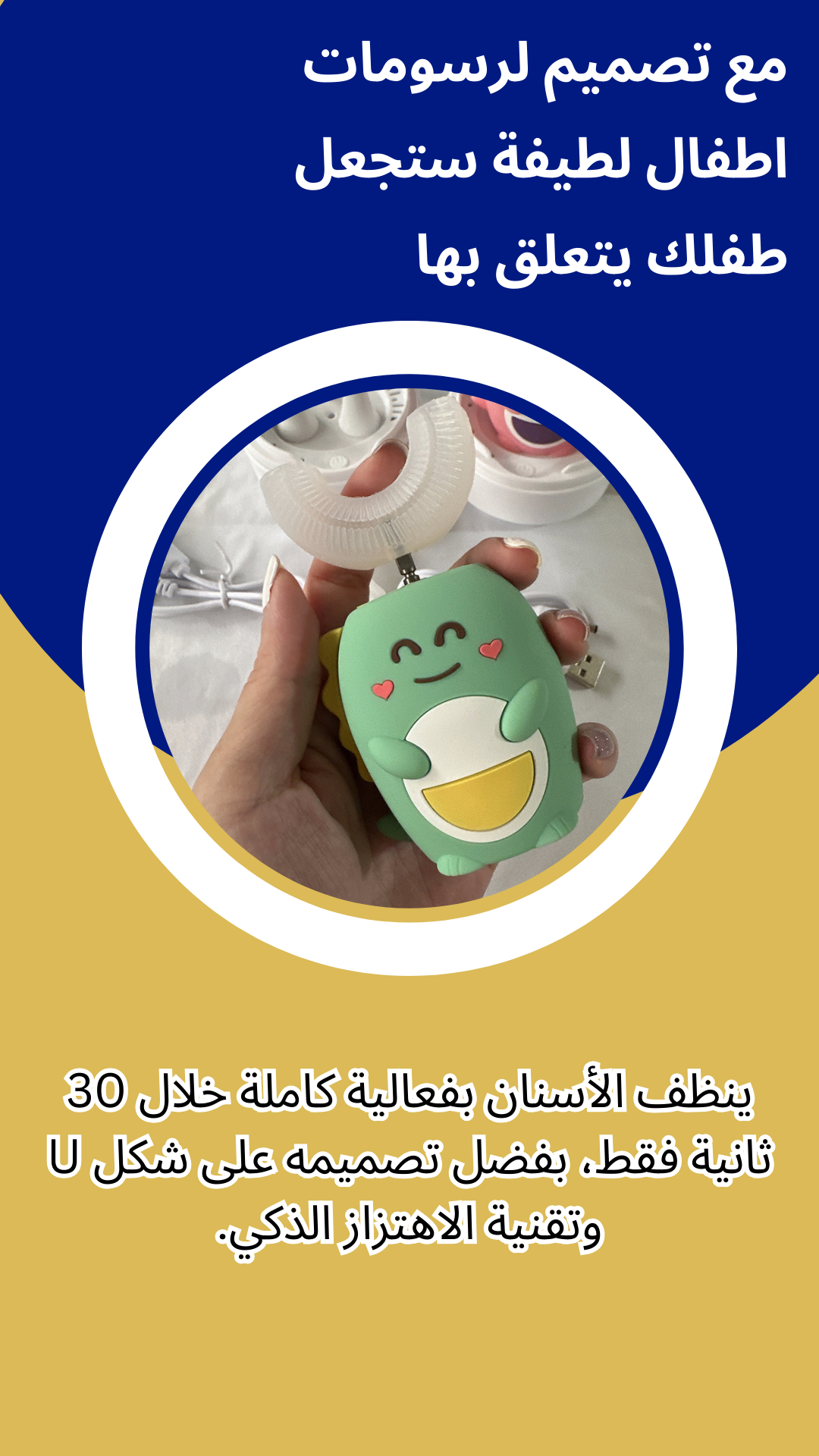 فرشاة الأطفال الذكية هي فرشاة أسنان كهربائية بتصميم لطيف ومرح على شكل شخصية كرتونية لجعل تجربة تنظيف الأسنان أكثر متعة. تعمل بتقنية حديثة تتيح تنظيف الأسنان بشكل كامل في وقت قصير، مما يشجع الأطفال على الالتزام بعادة العناية اليومية بالفم. تأتي مزودة برأس فرشاة على شكل حرف U يناسب فم الطفل لتوفير تنظيف شامل، بالإضافة إلى شاحن USB لسهولة الاستخدام. بفضل شكلها الجذاب وألوانها المبهجة، فهي مثالية للأطفال من عمر 2 إلى 8 سنوات، وتساعد على جعل تنظيف الأسنان عادة ممتعة وصحية.